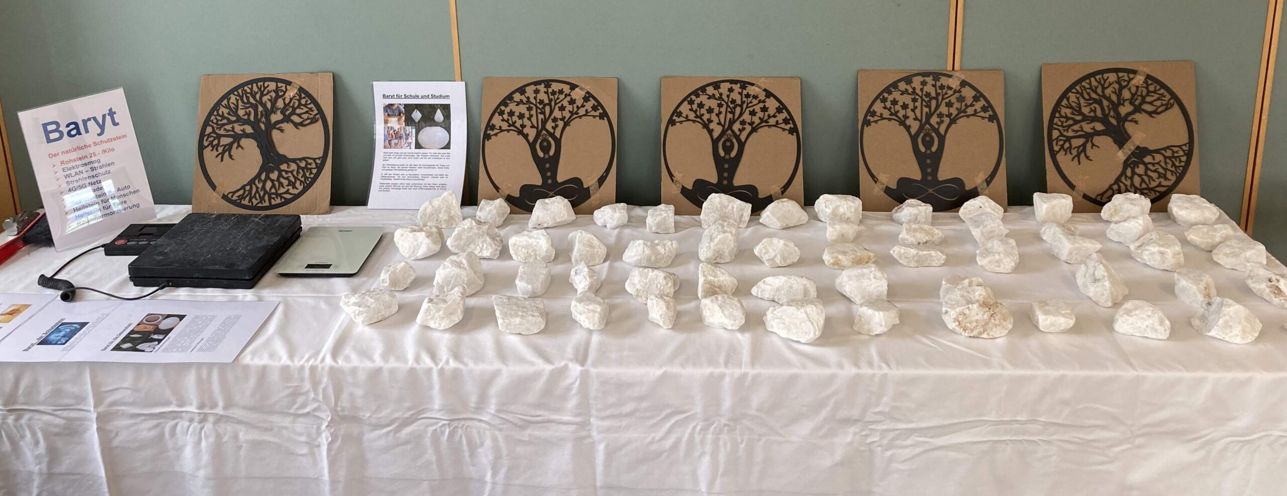 Wir haben auch wieder unseren Baryt-Rohstein und viele Baryt-Produkte dabei, den kraftvollsten Schutz- und Heilstein unserer Zeit! Gerne erzählen wir Ihnen ausführlich am Open House mehr über diesen wertvollen Stein mit all seinen Möglichkeiten und Eigenschaften.