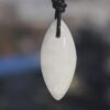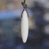 Baryt-Anhänger, handgeschliffener Stein mit Loch und Baumwollband, Grösse 19x43mm.