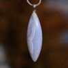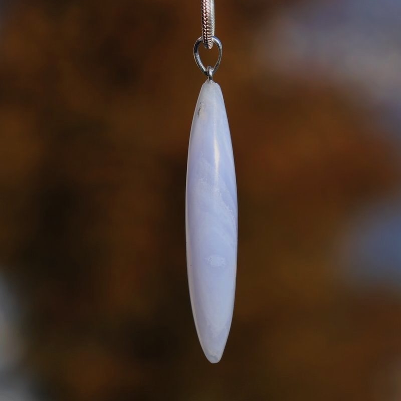 Der fein gebänderte Chalcedon von schöner Qualität ist gut für die Stimmbänder und wirkt spannungslösend und kühlend! Volkstümlich wird er „Rednerstein“ genannt. Warum? Weil er Menschen, die viel sprechen oder vortragen müssen, aber auch z.B. Sängern eine kräftige, wohlklingende Stimmer verleihen soll. Alle Störungen in diesem Bereich begleitet der Chalcedon positiv.