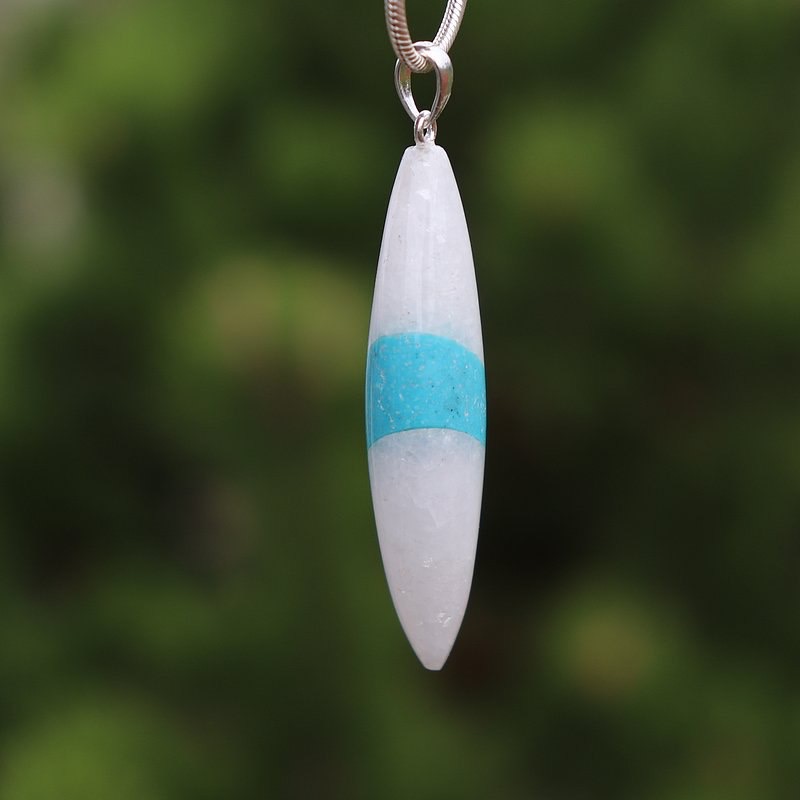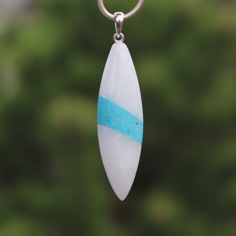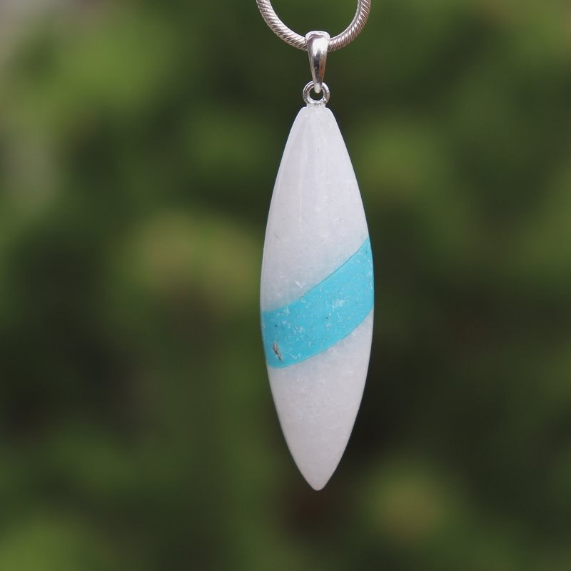 Diese wundervolle Anhängerkreation mit Marmor und Türkis ist 13x47mm gross und hat eine 925 Silberöse.