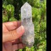 Wir haben hier einen schönen und speziellen, Doppelender Bergkristall mit faszinierenden Innenleben: Regenbögen, Limonit und schwarzen glimmerartigen Einschlüssen, wir vermuten Hämatit. Dieser Kristall hat eine kräftige, urige Energie, leider kennen wir den Fundort nicht.