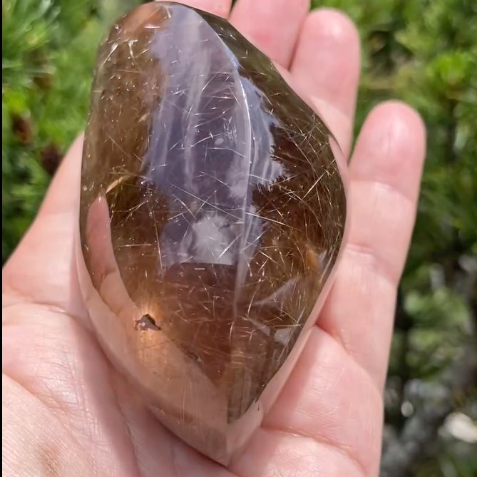 Video im Sonnenlicht, er glitzert und schimmert sehr intensiv und ist voller Goldrutilen.