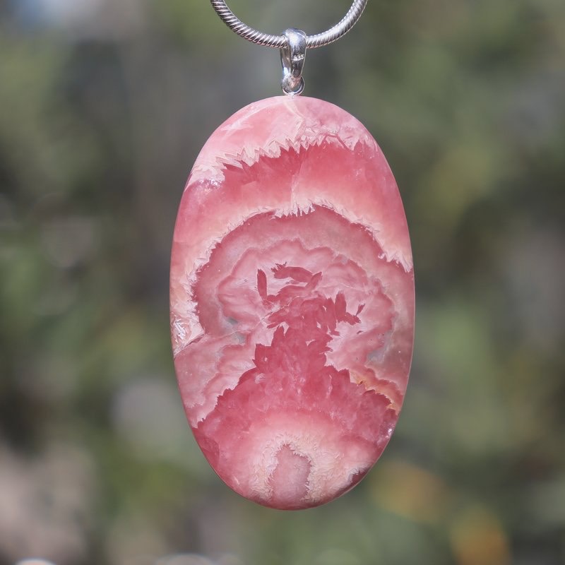 Fotos im Sonnenlicht, Rhodochrosit Anhänger ist durchscheinend, die kraftvolle Farbe ist in natura genau gleich!