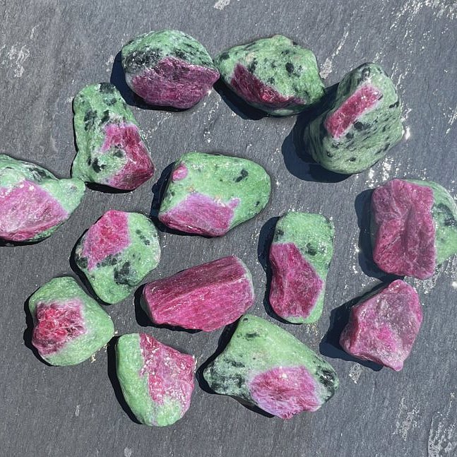 Die Qualität der Rubine ist sehr schön und die Farbe sehr kräftig. Ideal zum schleifen, auflegen, als Wasserstein, Heilstein oder Handschmeichler. Das Lot wiegt 100g, die Steine sind getrommelt, aber nicht auf Hochglanz. Die einzelnen Steine haben eine Grösse von 2-3cm und wurden nass fotografiert.