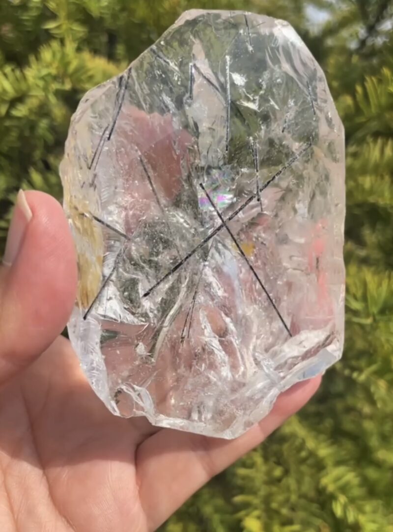 Angeschliffener Turmalinquarz (Schörl) mit Regenbögen…